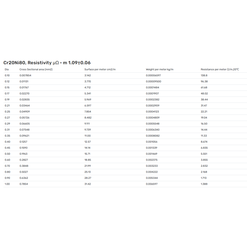 Il filo Nichrome è un filo in lega austenitica composto per l'80% da nichel e per il 20% da cromo. Viene utilizzato a temperature di esercizio fino a 1.200 ° C e ha una buona resistenza all'ossidazione e alla corrosione. Inoltre, il filo di resistenza ha una buona formabilità e duttilità.